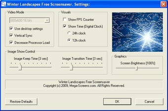 O Winter Landscapes traz para o computador imagens típicas dos invernos rigorosos da Rússia, do Canadá ou da Noruega, por exemplo. As fotos que o programa apresenta são de boa qualidade e mostram num cantinho a hora atual.